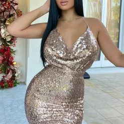Fashion Nova Leila Sequin Mini Dress – Gold