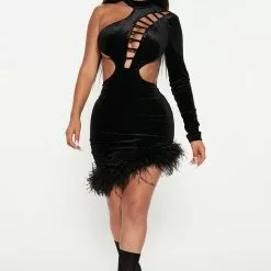 Fashion Nova Penthouse Level Velvet Mini Dress – Black