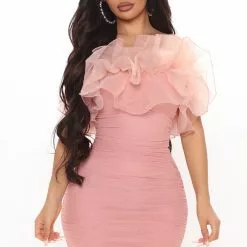 Fashion Nova Ruffle Mami Mesh Mini Dress – Mauve