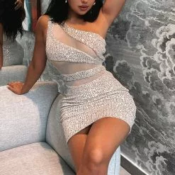Fashion Nova Party Seeker Sequin Mini Dress – Cream