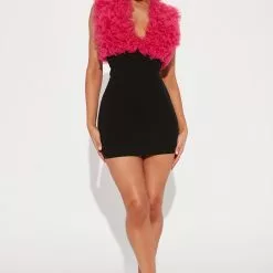 Fashion Nova Lana Tulle Mini Dress – Black/Pink