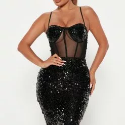 Fashion Nova Kayla Sequin Midi Dress – Black
