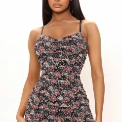 Fashion Nova Ginny Floral Mini Dress – Black/combo