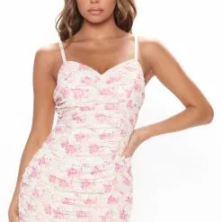 Fashion Nova Ginny Floral Mini Dress – Ivory/combo
