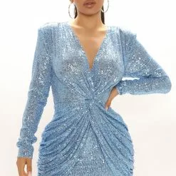 Fashion Nova Anyssa Sequin Mini Dress – Blue