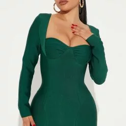 Fashion Nova Always Good Long Sleeve Bandage Midi Dress – Hunter