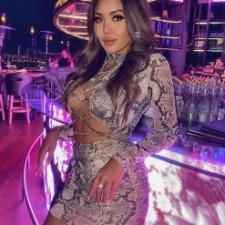 Fashion Nova Brandy Mesh Mini Dress – Brown/combo