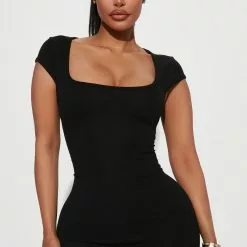 Fashion Nova Rita Ribbed Mini Dress – Black
