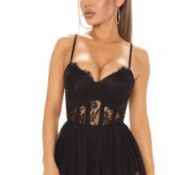 Fashion Nova Happy Hour Corset Shirt Dress – Black