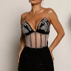 Fashion Nova Luscious Looks Embellished Mesh Mini Dress – Black
