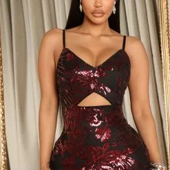 Fashion Nova Rosie Sequin Maxi Dress – Wine