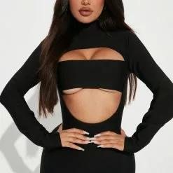 Fashion Nova Rocking Body Cut Out Midi Dress – Black