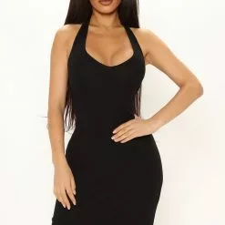 Fashion Nova Isabelle Halter Midi Dress – Black