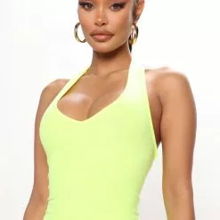Fashion Nova Isabelle Halter Midi Dress – Neon Yellow