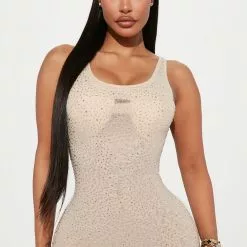 Fashion Nova I Am An Icon Embellished Maxi Dress – Nude