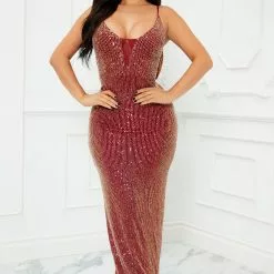 Fashion Nova Giving Life Sequin Maxi Dress – Copper