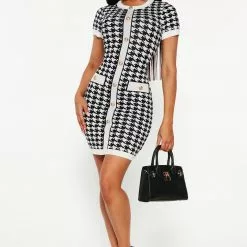 Fashion Nova NYC Bound Sweater Mini Dress – Black/White