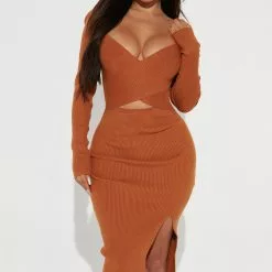 Fashion Nova Just Chilling Midi Dress – Marsala