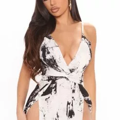Fashion Nova Look My Way Bandage Midi Dress – Black/White