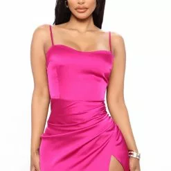 Fashion Nova Love Galore Satin Midi Dress – Fuchsia