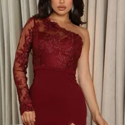 Fashion Nova Bonita Lace Maxi Dress – Burgundy