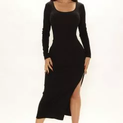 Fashion Nova Helena Ribbed Maxi Dress – Black