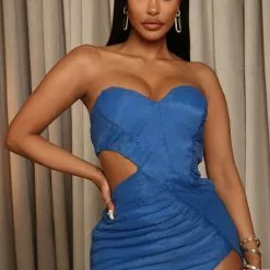 Fashion Nova Holy Slit Dress – Navy/Taupe