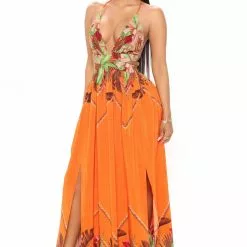 Fashion Nova Lanai Sleeveless Maxi Dress – Orange/combo