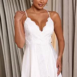 Fashion Nova Lace Dream Satin Maxi Dress – White