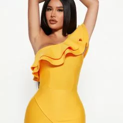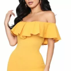 Fashion Nova Moments Like This Ruffle Dress – Mustard