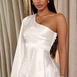 Fashion Nova Romance In The Air Satin Maxi Dress – Ivory