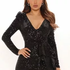 Fashion Nova Luxe Occasions Sequin Maxi Dress – Black