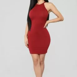 Fashion Nova Anne Marie Midi Dress – Dark Red
