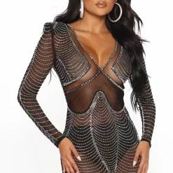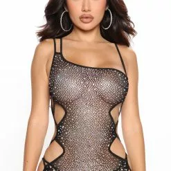 Fashion Nova Move Ur Body Embellished Mini Dress – Black