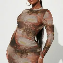 Fashion Nova Mojave Mesh Maxi Dress – Brown/combo
