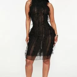 Fashion Nova Tall So Dramatic Mesh Mini Dress – Black