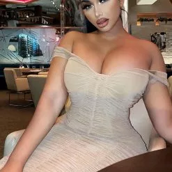Fashion Nova Ready And Ruched Mesh Midi Dress – White