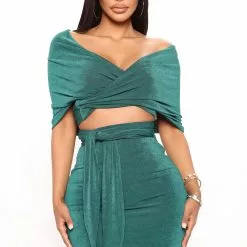 Fashion Nova Its A Wrap Slinky Midi Dress – Emerald
