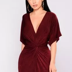 Fashion Nova Full Grown Knot Dress – Burgundy