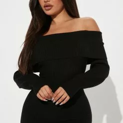 Fashion Nova Taryn Sweater Midi Dress – Black