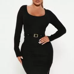 Fashion Nova Loop Me In Belted Sweater Dress – Black