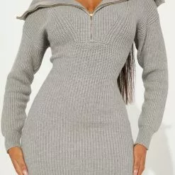 Fashion Nova Amika Sweater Mini Dress – Heather Grey