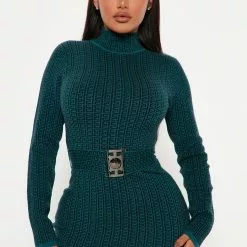 Fashion Nova Afternoon Tea Sweater Mini Dress – Green