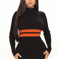Fashion Nova Amazing Grace Sweater Midi Dress – Black/combo
