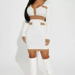 Fashion Nova Fall In Love Sweater Mini Dress – White/combo