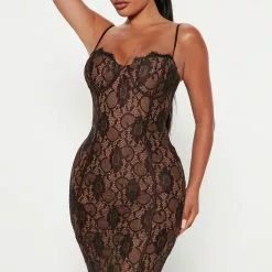 Fashion Nova Estelle Lace Midi Dress – Brown