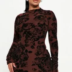 Fashion Nova Fall Forward Midi Dress – Brown/combo