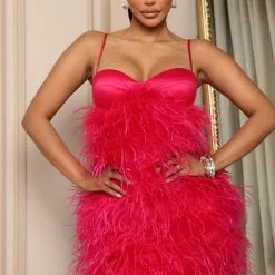 Fashion Nova Everything Expensive Feather Mini Dress – Fuchsia