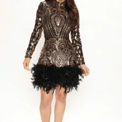 Fashion Nova Everything Expensive Feather Mini Dress – Black
