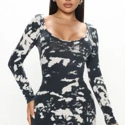 Fashion Nova Marley Tie Dye Midi Dress – Black/combo